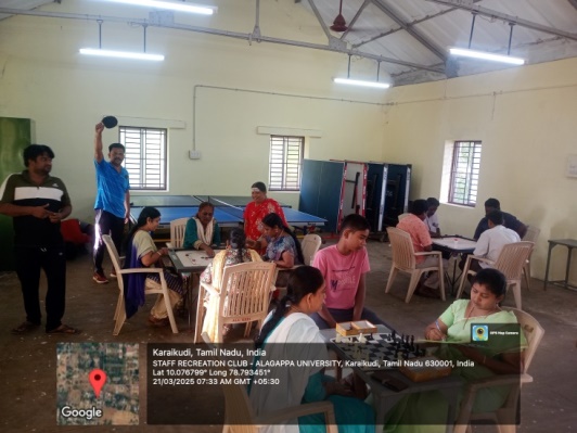 The Staff Recreation Club in Alagappa University is an organization dedicated to enhancing the well-being, morale, and sense of community among university staff members. It provides a platform for staff members to engage in recreational and social activities outside of their professional responsibilities, fostering a supportive and inclusive work environment.