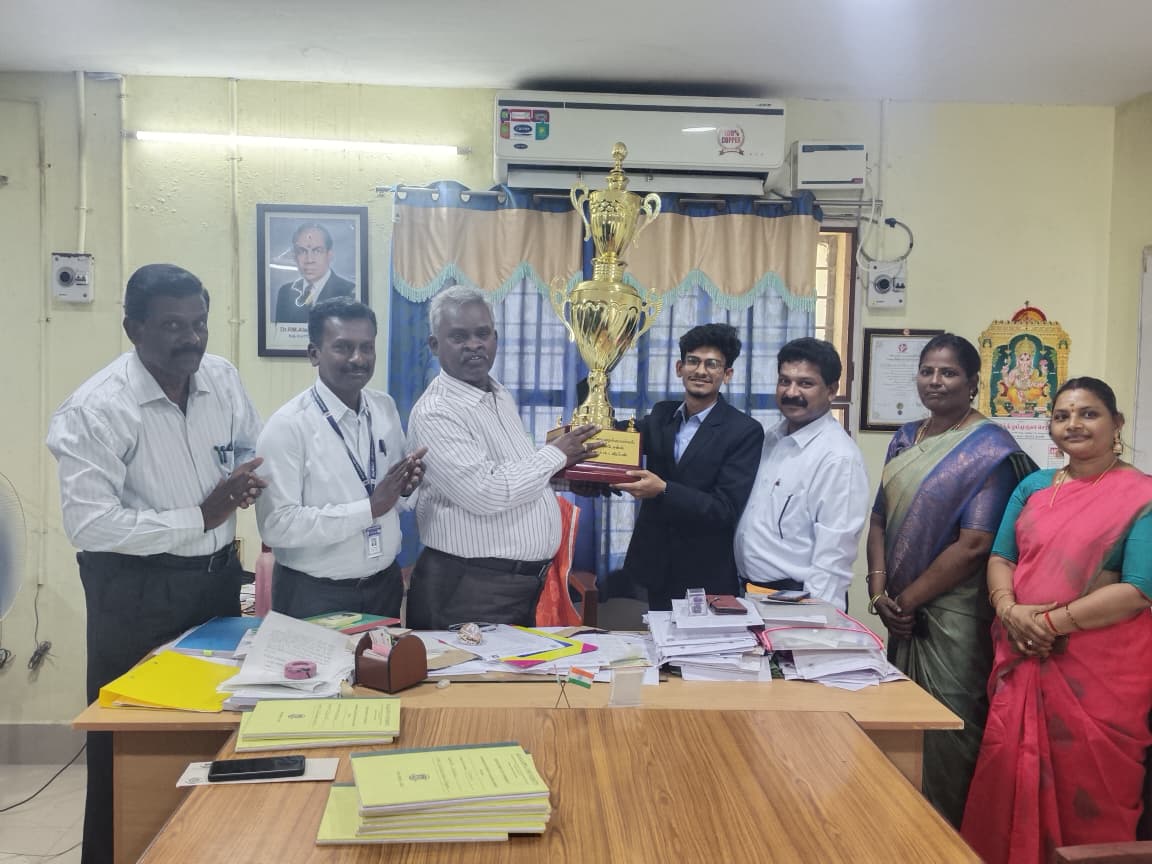 Mr. Naveen, a student of the Department of Commerce at Alagappa University, won the first prize at the state-level speech competition organized by Devakottai Kamban Kazhagam on 18th October 2025. During the Kamban Festival held at Devakottai on 30th October 2025, he was honored with a cash prize of ₹2,001, a certificate of appreciation, and a memento.